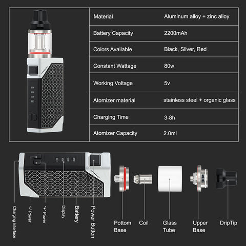 Vape Pen E cig Starter Kit Electronic Cigarette 80W Vaporizer 2200mAh Mod Pen